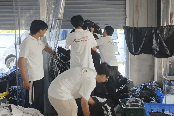波湖村“带富工坊”作为当地乡村振兴的新路径、好方法,极大带动了当地的经济发展。实践队员前往波湖村“带富工坊”开展“我为群众办实事”志愿活动。在“带富工坊”,实践队队员们深入车间一线,详细了解村民的工作流水线,帮助村民搬运原材料。通过亲身体验村民工作的整个过程,队员们更加认识到劳动的艰辛,同时也更加坚定了为促进乡村振兴努力奋斗的决心。