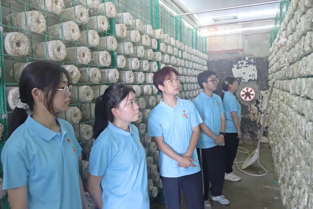 实践队来到了庐山市白鹿镇五里村蘑菇种植基地,通过观察蘑菇的生长环境,与种植户沟通,了解种植规模、成本投入、病虫害防治等情况;在当地蘑菇加工车间,实践队员了解产品生产流程,探讨市场销售渠道及品牌建设难题,系统梳理产业痛点与发展机遇。基地积极带动了周边村民就业,为残疾人、脱贫户提供了稳定的收入来源,助力实现脱贫致富。