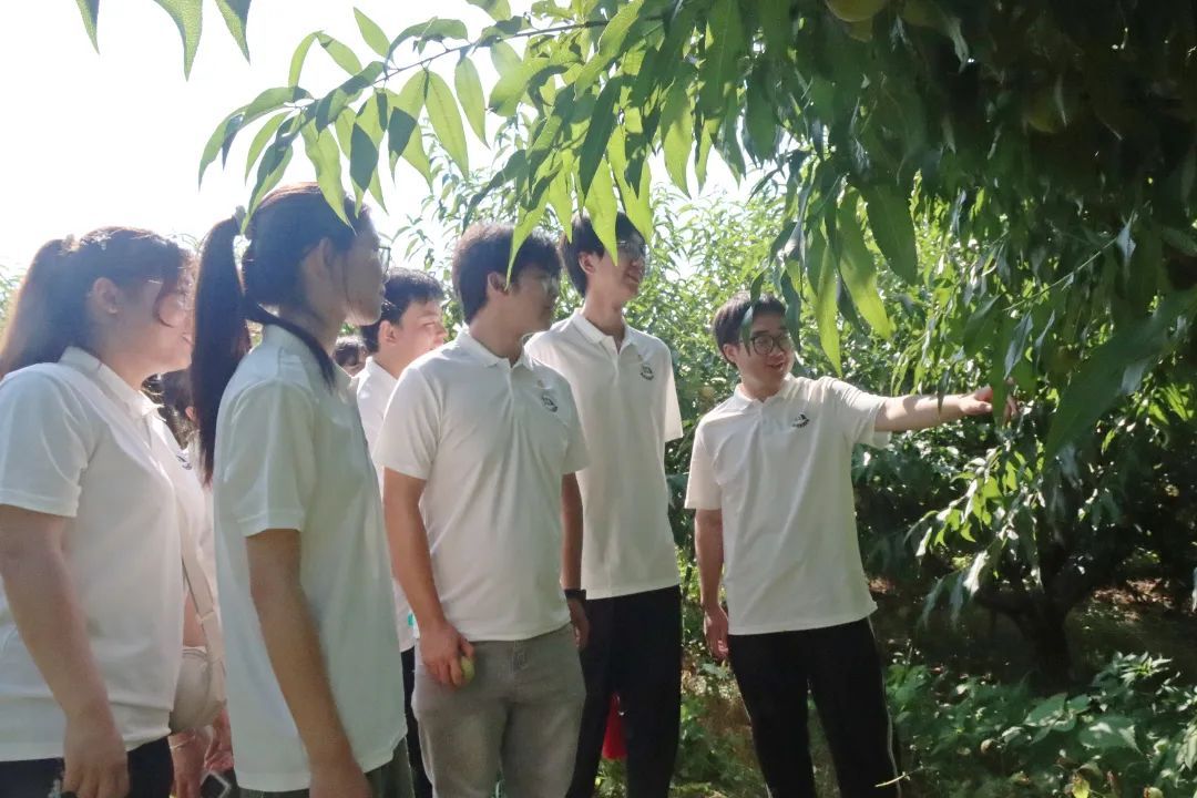 实践队队员踏进秀峰村的庐山蜜桃采摘园,就市场环境、突出卖点与果农们展开了讨论,并体验了黄桃的采摘过程,不仅学会了如何正确挑选和采摘黄桃,还了解了其种植技术、管理方法、发展现状以及农村经济发展面临的挑战。在与果农的交流中,队员们了解到,蜜桃产业不仅让村民们增收致富,还带动了周边旅游业的发展,促进了旅游业与当地特色农业的融合。
