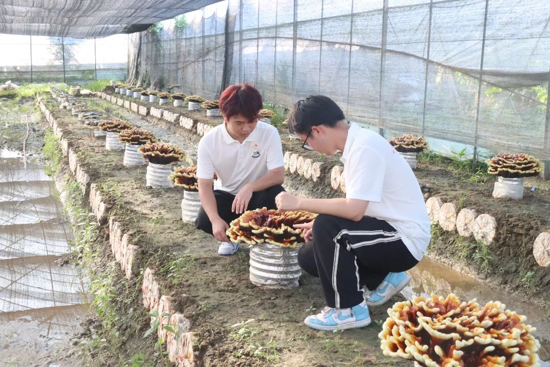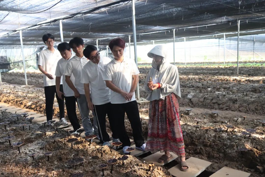 实践队踏入通书院村灵芝种植基地,大棚下仿野生的种植环境清晰可见。基地负责人向队员们细致讲解灵芝从种植到加工的全流程,并表达了对“企业 + 农户”创新模式的展望。按照该模式,村民能够以个体经营形式参与灵芝培育。这种模式若顺利推进,不仅可以有效提升土地利用率与灵芝产量,还能让产业发展红利精准惠及每家每户。谈及未来,负责人眼中满是憧憬,对这片土地的发展前景充满信心。