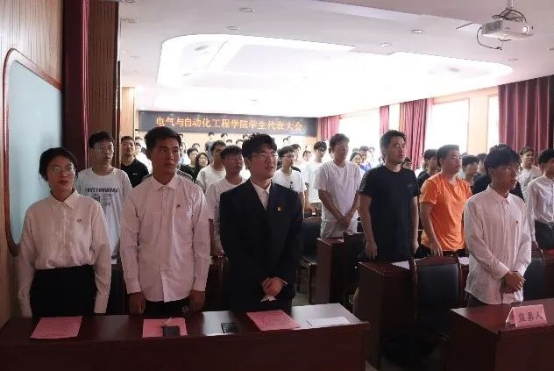 第一项议程全体起立奏唱国歌,大会在雄伟庄严的国歌中拉开序幕。