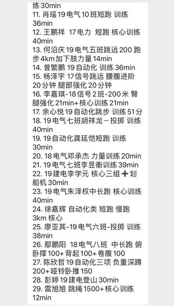公司全体员工纷纷响应,“云锻炼”阵容不断扩大,锻炼方式层出不穷,有跑步、哑铃卧推、引体向上等毅力锻炼,有健腹轮、深蹲、平板撑等专项训练,有篮球、羽毛球、乒乓球等休闲娱乐,更有闲暇时打太极等修身养性的锻炼。每一位同学都在按时完成自己设立的目标,班群内皆是同学们分享的运动内容和心得体会。