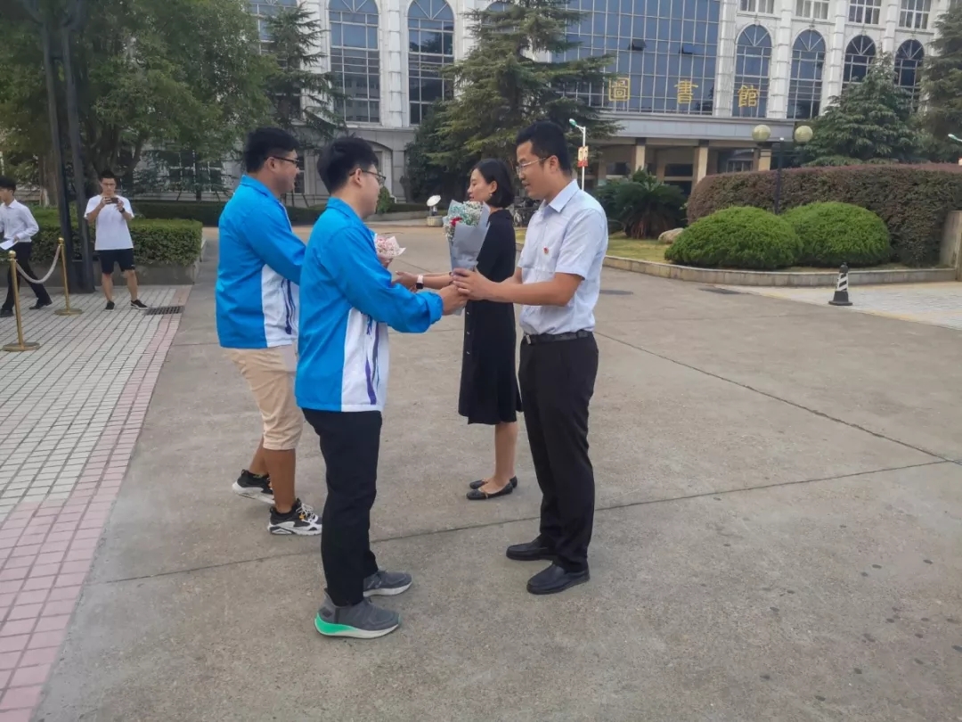 2017级的何洪同学、马融同学作为员工代表给老师献花。