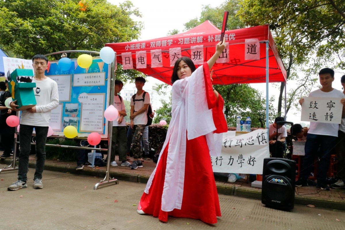 下午两点半,在活动还没有开始前,天空中忽然飘起绵绵的小雨,却并没有人提出要将活动暂时搁置。“在班级接到活动通知的时候,大家都很兴奋,也在准备活动的时候下了很大的心血。因此,就算下起了小雨,也并不能浇熄大家展示自我的热情。”2018级电气六班班长陈集贤说道。
