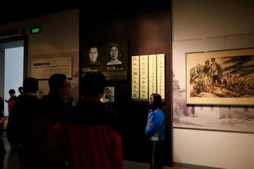怀着崇敬的心情,同学们开始参观纪念堂。高年级的学长学姐为2018级同学讲解墙面上记录着的一段段被鲜血浸透的革命过往,他们通过声情并茂的讲解将前辈们可歌可泣的奋斗历程重新展现出来,同学们跟随着讲解中革命的推进,或愤慨,或悲痛,或振奋,仿佛自己也在和先烈们一起为了共同的理想努力着。