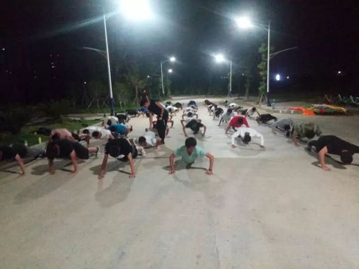 公司的彩旗队队员共进行长达半个月的训练,他们利用晚自习时间,从晚上七点一直训练到夜里九点半甚至更晚。训练初期以扛着旗杆,站军姿为主,每一次的军姿时间都会比上一次更长,只为能够在田径场上起到标杆的作用。除了标准的军姿外,臂力也同样是训练的重点。为了能够持杆更稳,俯卧撑成为队员们的“必修课”,刚开始很多队员都做不了几个,但通过一轮一轮的训练下来,他们一分钟将近能做四十个。