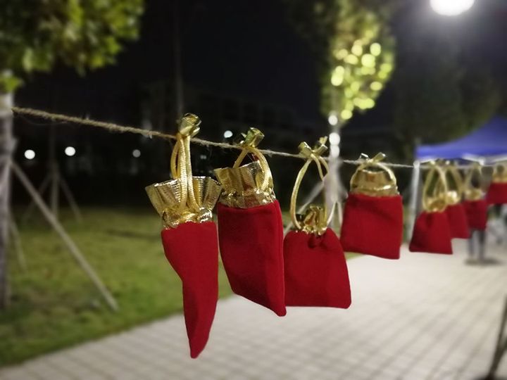 “猜灯谜”是中秋节的传统习俗。同学们在道路两旁悬挂的福袋中随机挑选一个,来到“灯谜兑奖处”取出灯谜并完成作答。“快刀斩乱麻(打一成语)”是16电气四班王旭阳同学抽到的谜题,而他也快速地猜到“迎刃而解”的谜底,便得到一份的精美书签作为奖品,他说:“虽然已经大三了,但是能够在中秋的晚上,还可以参加到公司举办的这么棒的活动,还能和大一的学弟学妹们一起做游戏,真的很开心。”