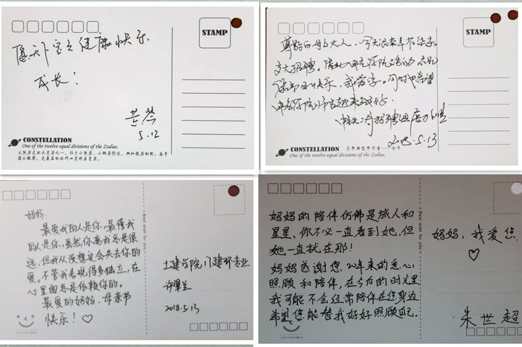 中铁二局招聘组工作人员也积极参与了本次活动,他在明信片中亲切称呼母亲为母上大人,并写下了对母亲的祝福。
