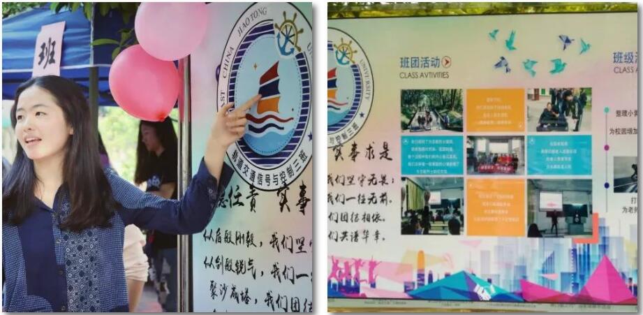 印有班团学风建设,班团组织的志愿活动、文艺活动、主题班会,及各式各样班训、班徽的展板展示出丰富多彩的课余班团建设。一张张载满回忆的照片记录着班团组织参观缅怀革命先烈的纪念馆、班团开展意义深刻的“警惕邪教”班会等活动。