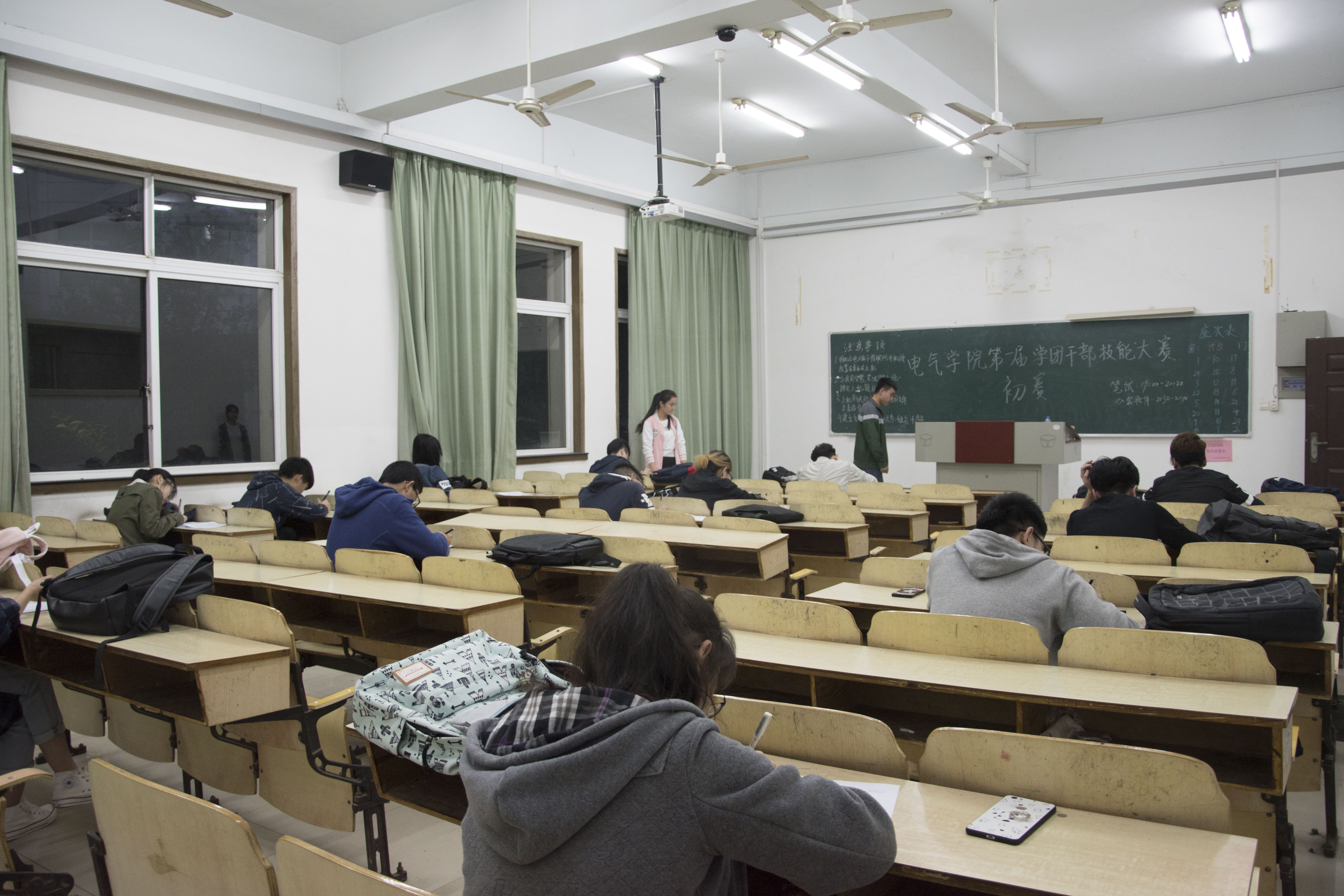 考场上纪律严明,参赛选手认真答题,努力为自己和班级争取荣誉。