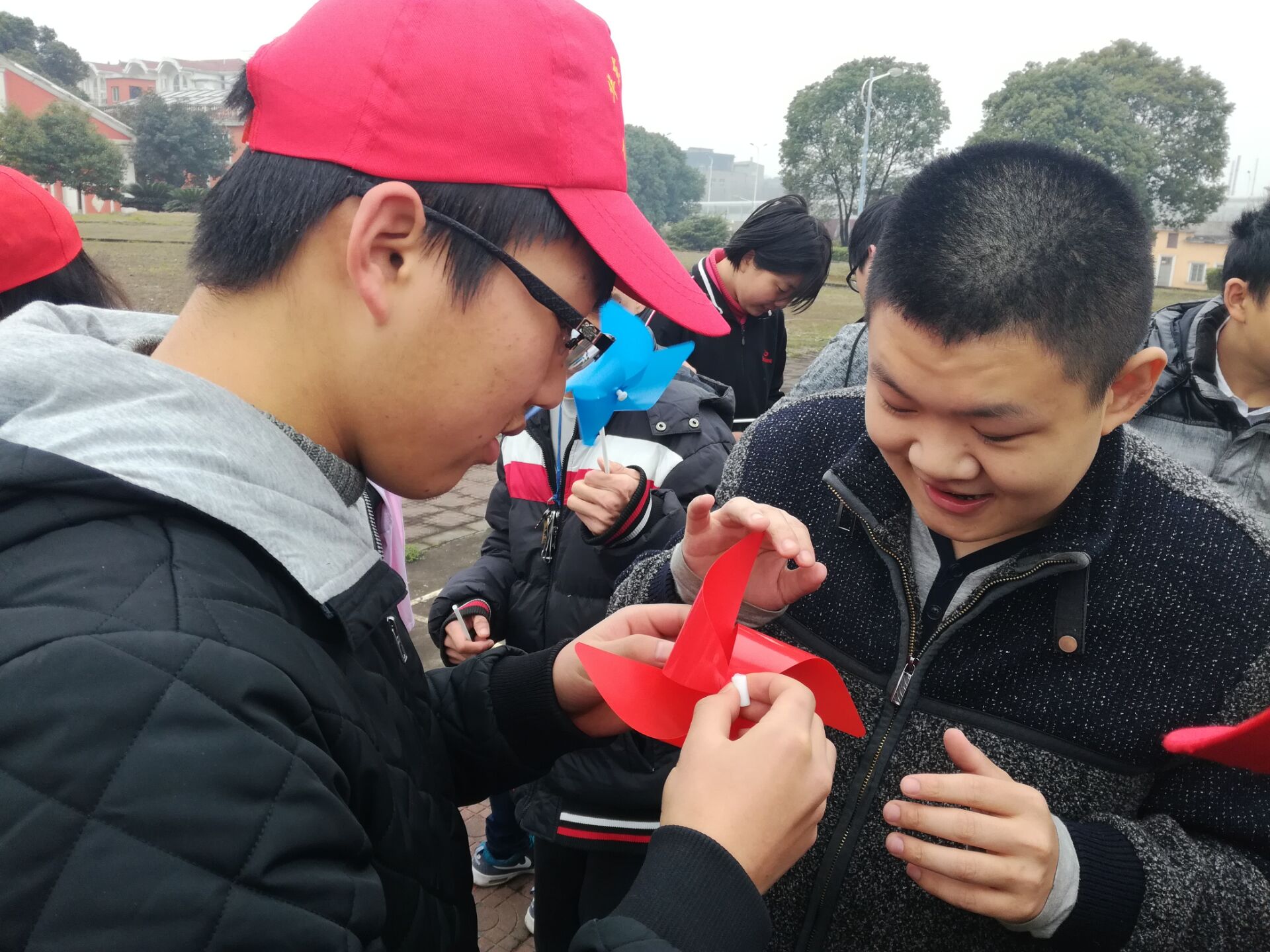 抵达安养院后,志愿者一面帮助安养院老师整理捐赠的衣物并帮忙打扫卫生,一面与这群特殊的“孩子们”进行起游戏互动。风车缓缓转动,笑声溢满操场。志愿者们准备了大量的风车,并邀请“孩子们”共同制作简单的手工作品。在分发糖果时,一位20岁年纪的女孩,将糖果小心放进口袋,她说:“这是宝物,要珍藏。”