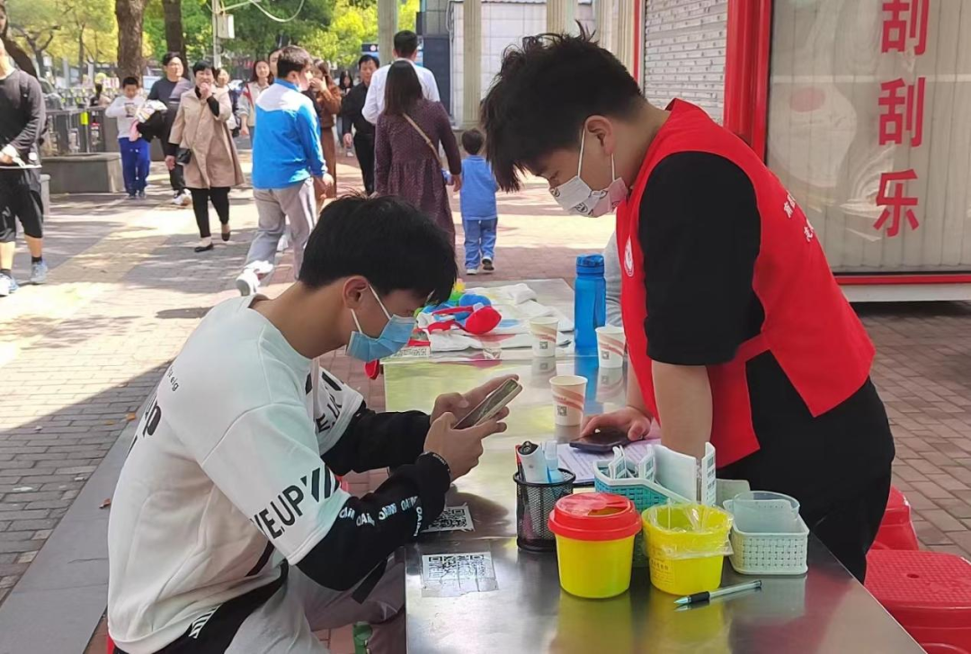 每周末的百花洲献血站,满心“热血”的献血者和身着红马甲的少年们相谈甚欢,场面温馨,其乐融融。