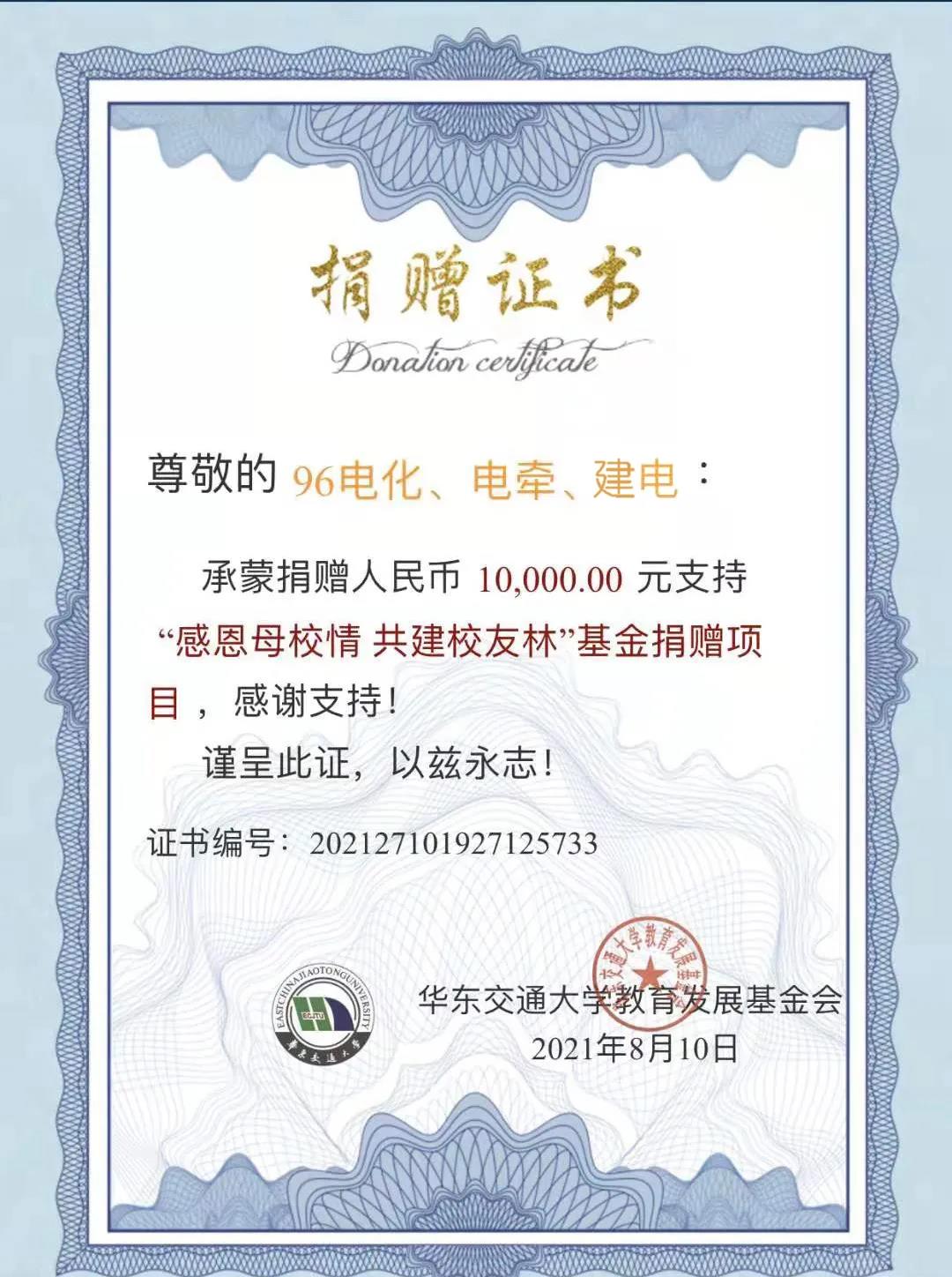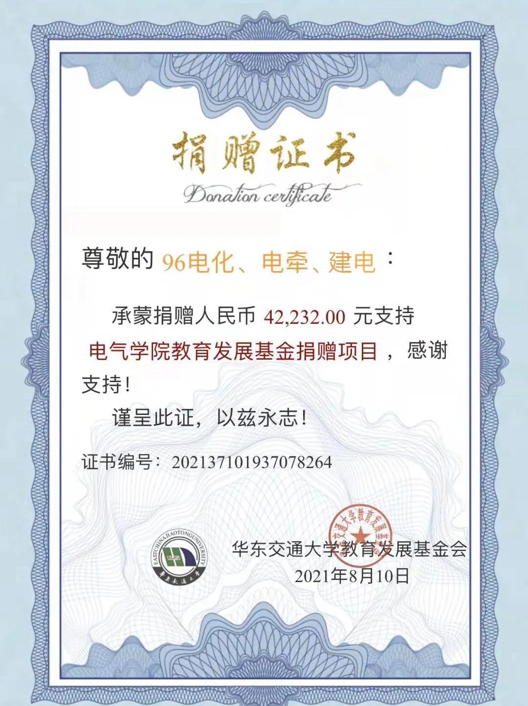 近日,1996级电化、电牵、建电专业员工向公司捐赠了人民币42232元,以支持“bevictor伟德教育发展基金捐赠项目”。同时,向公司捐赠了人民币10000元,以支持“感恩母校情 共建员工林”基金捐赠项目。